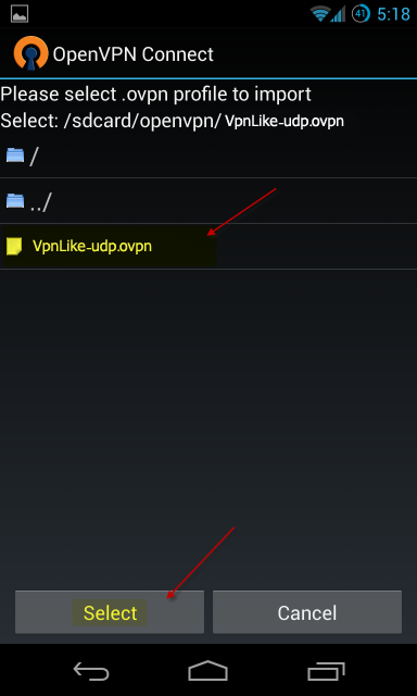 همچنین فایل تنظیمات را دریافت کرده و پس از خارج کردن از حالت فشرده بر روی گوشی یا تبلت خود کپی کنید. فایلی که بر روی دستگاه خود منتقل می کنید VpnLike-udp .ovpn نام دارد.