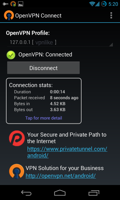 کانکشن OpenVpn مخصوص Android را از لینک زیر دانلود کنین و بر روی گوشی خود نصب کنید فیلتر شکن اندروید