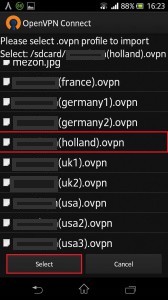 فایل کانفیگ که با پسوند ovpn میباشد را انتخاب کنید.