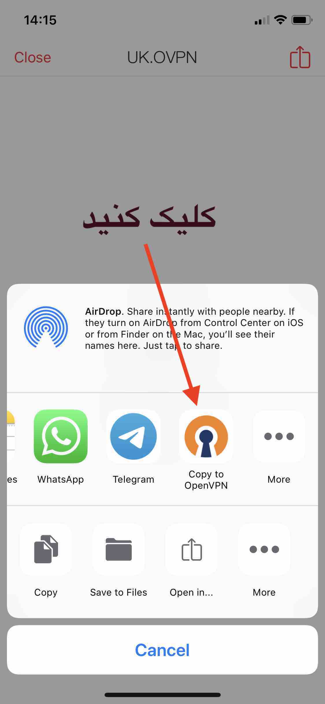 سپس با گوشی روی لینک زیر کلیک کنید و طبق تصویر زیر عمل کنید (با مرورگر سافاری باز شود)